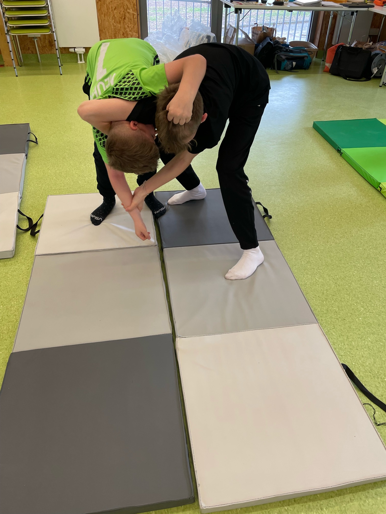 Außerdem eignen sich die Jungs Strategien zur Selbstbehauptung und Konfliktlösung an und werden dabei vor allem auf den Zusammenhang der Körpersprache und dem Auftreten gegenüber anderen achten. Auf spielerische Art erfahren die Teilnehmer, wie sie konfliktreiche Situationen erkennen und welche Handlungs-möglichkeiten sie haben, diese für sich postitiv zu lösen. Auch dieses Mal werden wir Strategien der Selbstverteidigung erlernen, um sich notfalls auch körperlich zur Wehr setzen zu können.
